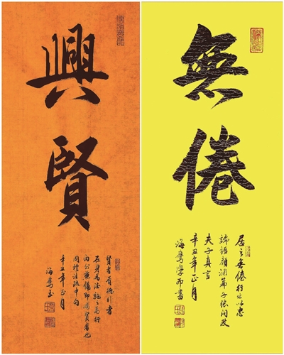 書法是中華優(yōu)秀傳統(tǒng)文化的重要構(gòu)成之一,也是人類文明的瑰寶。葛海鷹對中國優(yōu)秀傳統(tǒng)文化擁有十分自信的態(tài)度。在他看來,學(xué)習書法既是個人的興趣愛好和修身養(yǎng)性良方,也是為傳承和弘揚中華優(yōu)秀傳統(tǒng)文化、彰顯人類文明的光輝盡一份力,更是堅定我們文化自信的一種具體實踐。葛海鷹將自己的書齋取名“三忘齋”,即是借用《論語》“發(fā)憤忘食,樂以忘憂,不知老之將至”句意,以激勵自己不懈努力,追求忘我境界。