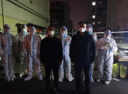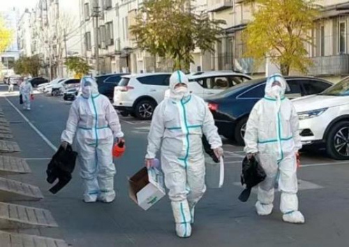 在接到封控管理的通知后,心連心物業(yè)管理公司總經理王宏彪第一時間部署防疫工作,抽調十余人進入管控區(qū)開展工作,隨后又派遣公司副經理果慶為隊長支援果園新里北區(qū)。在管控區(qū),他們堅守崗位,守護著社區(qū)“最后一百米”,身背十幾公斤重的消殺器消殺;拿著掃把清理落葉;協(xié)助社區(qū)進行核酸檢測;配送新鮮的果蔬食品……他們無私奉獻,為居民安全保駕護航,竭盡全力守住美好家園。