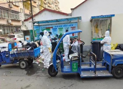 11月9日,果園新里北區(qū)閉環(huán)內職工對管轄區(qū)的垃圾桶站進行集中清運,發(fā)現甲區(qū)一號桶站無人清理,此桶站雖然不在心連心物業(yè)管轄范圍,但為了封控區(qū)內環(huán)境安全,心連心物業(yè)職工主動承擔起封控區(qū)內所有垃圾桶站的清理和運輸工作。
