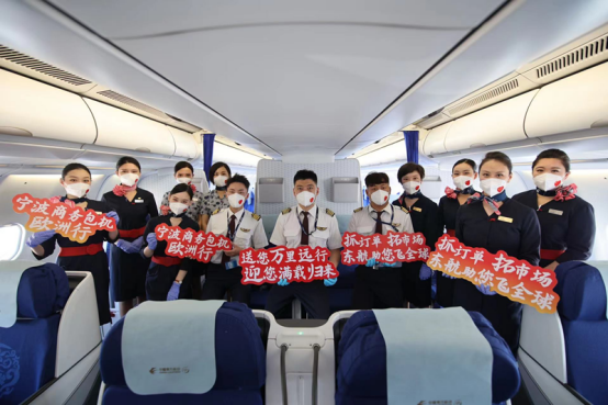 飛機起飛后,機長通過客艙廣播系統(tǒng)向代表團表達美好祝愿:“今天的航程注定意義非凡,復工達產(chǎn)、促進外貿(mào)的共同目標,讓我們相聚在萬米高空,共同的使命,讓我們對前程充滿期待。本次航班是寧波首趟也是全國首創(chuàng)的涉外商務人員包機,你們傳承著新時代浙商精神,創(chuàng)業(yè)創(chuàng)新闖天下,合心合力強浙江,展現(xiàn)著中國企業(yè)迎難而上的信心與勇氣。非常高興與你們同行,你們出國抓訂單、拓市場,東航助你們?nèi)蝻w、飛全球,一路相伴、共創(chuàng)精彩。衷心祝愿大家在歐洲工作順利,帶著訂單滿載而歸,祝愿中國企業(yè)服務祖國、走向世界的航程更廣闊!”