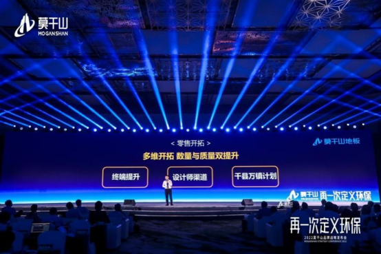 發(fā)布會(huì)上,莫干山板材宣布將通過(guò)品牌、產(chǎn)品、渠道、服務(wù)、速裝等五輪驅(qū)動(dòng)戰(zhàn)略,合力推動(dòng)莫干山板材百億計(jì)劃,實(shí)現(xiàn)占領(lǐng)ENF品類(lèi)、占領(lǐng)ENF環(huán)保知識(shí)、占領(lǐng)ENF環(huán)保技術(shù)的戰(zhàn)略愿景。品牌戰(zhàn)略以ENF級(jí)環(huán)保板材領(lǐng)導(dǎo)者為中心,通過(guò)飽和式宣傳搶占用戶(hù)心智,霸占ENF級(jí)環(huán)保,同時(shí)開(kāi)啟全員營(yíng)銷(xiāo)“達(dá)人計(jì)劃”。產(chǎn)品戰(zhàn)略上通過(guò)1+N模式全面聚焦ENF級(jí)環(huán)保板材,以豆茵板作為ENF級(jí)環(huán)保板材明星產(chǎn)品,在2022年實(shí)現(xiàn)豆茵板全國(guó)終端全覆蓋,并通過(guò)多系列新品研發(fā)實(shí)現(xiàn)產(chǎn)品體系全覆蓋、渠道體系全覆蓋。