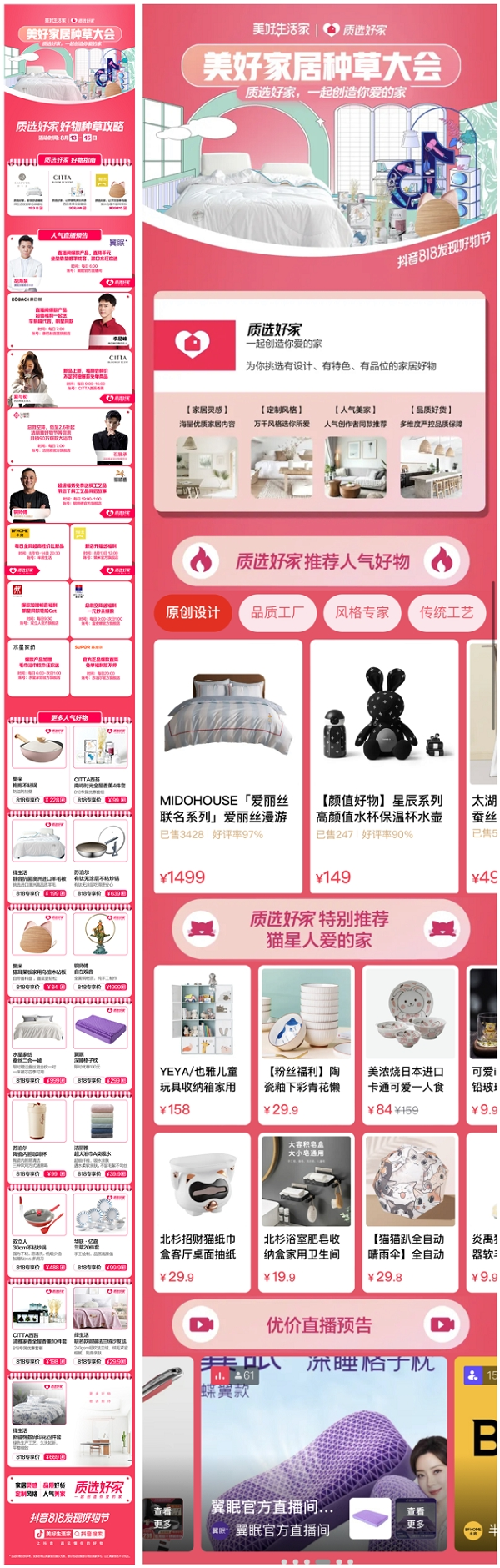 抖音電商作為線上優(yōu)質(zhì)消費品種草場景,在擁躉了一大批消費者之后,精準洞察各類型消費群體的生活狀態(tài)與對家居采購的深層需求成為了當下重要的課題,從理解用戶痛點、人氣種草、口碑推薦到美好生活場景的情緒向共鳴,「質(zhì)選好家」通過內(nèi)容、商品多重撮合方式吸引多類型人群參與其中,引爆流量熱潮,助力更好的商品熱賣,高效的撮合了人與商品之間的供需關系,真正促成了「雙向奔赴」的美好體驗不斷發(fā)生。