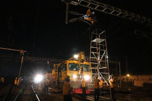 海口站是連接環(huán)島高鐵東西段、西環(huán)貨線和過海列車的樞紐車站,日常維修天窗時(shí)間只有60-120分鐘,施工天窗也在180分鐘內(nèi),對(duì)于更換跨越7條承導(dǎo)線索的硬橫梁是個(gè)不小的挑戰(zhàn),該段周密部署,從9月15日就進(jìn)入了緊張的更換海口站硬橫梁的過渡施工天窗作業(yè)中。