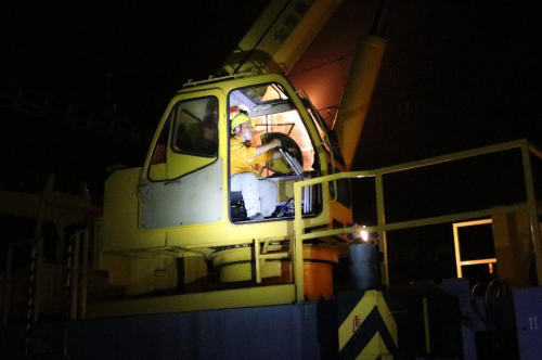 2022年9月22日凌晨0點(diǎn)33分,一聲“開工作業(yè)”嘹亮的口號(hào)劃破了??诩澎o的夜空,作業(yè)人員根據(jù)分工有條不絮的開始忙碌起來。1點(diǎn)35分隨著吊車吊臂平穩(wěn)落下,一組長23.03米的橫梁穩(wěn)穩(wěn)的落在鋼柱上,作業(yè)人員迅速對(duì)位、連接、緊固、落臂……熟練的操作一氣呵成,順利精準(zhǔn)完成了海南環(huán)島高鐵首次硬橫梁更換作業(yè)。