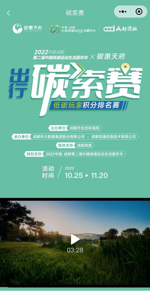 2022中國·成都第二屆中國綠道運動生活嘉年華X碳惠天府出行“碳”索賽正式上線!