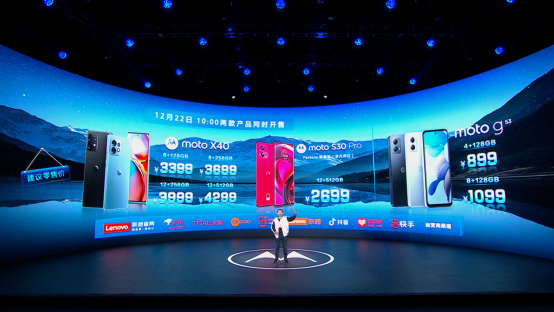 2022年12月15日19時(shí)30分,聯(lián)想moto召開(kāi)了以“心無(wú)畏,赴山?!睘橹黝}的新品發(fā)布會(huì),正式發(fā)布了moto X40、moto G53和moto S30 Pro潘通限量版(非凡洋紅)三款新品。其中,“手機(jī)中的SUV”moto X40,首發(fā)價(jià)3399元起;“千元5G全擊手”moto G53,首發(fā)價(jià)899元起;而moto S30 Pro潘通限量版(非凡洋紅),首發(fā)價(jià)則是2699元起。