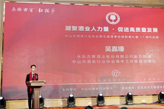 永樂古窖酒業(yè)股份有限公司副總經(jīng)理吳嘉壕作為大會(huì)官方合作伙伴、會(huì)員單位代表上臺(tái)致辭。