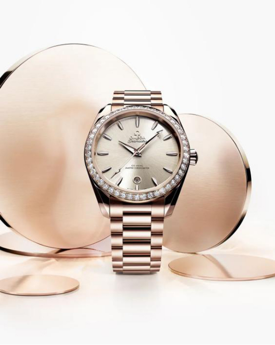 當(dāng)然,對于想要在基礎(chǔ)款式之上展露更多個人特色的女生來說,足夠特別才足夠令人喜歡。Aqua Terra Shades腕表有一款38毫米的全金腕表,采用歐米茄獨家研發(fā)的Sedna 18K金打造而成,這一獨特的紅色18K金色澤雅致,且不易褪色。表圈鑲飾46顆閃耀美鉆,共1.77克拉。砂巖色表盤經(jīng)CVD技術(shù)打造,呈現(xiàn)出太陽射線的打磨效果。