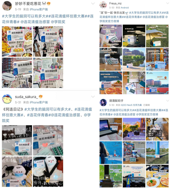 青年一代生生不息,青春力量強(qiáng)勢傳遞。在作品征集期間,參賽學(xué)子主動以圖文形式在微博平臺、小紅書平臺上發(fā)布自己的創(chuàng)意作品、創(chuàng)作歷程、創(chuàng)意感悟等相關(guān)內(nèi)容,輸出年輕人的品牌觀念,展現(xiàn)新時(shí)代青年昂揚(yáng)的精神風(fēng)貌。