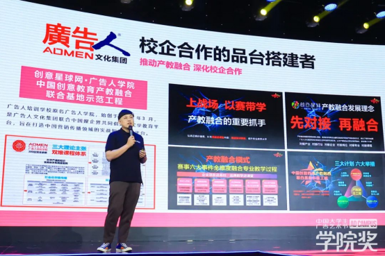 創(chuàng)意星球董事、副總經(jīng)理李春生先生題為《做校企合作的提燈人和馬車夫》的演講。李春生先生詳細(xì)說(shuō)明廣告人文化集團(tuán)的歷程、內(nèi)容生態(tài)圈與平臺(tái)戰(zhàn)略布局,表示:“廣告人文化集團(tuán)發(fā)展至今,積累了深厚的社會(huì)資源。作為熱愛(ài)教育事業(yè)的追夢(mèng)人,在各高校紛紛積極探索實(shí)踐教學(xué)、教育改革之路時(shí),廣告人文化集團(tuán)決心盡自己所能幫助高校在實(shí)踐教學(xué)的道路上走得更快?!?br />