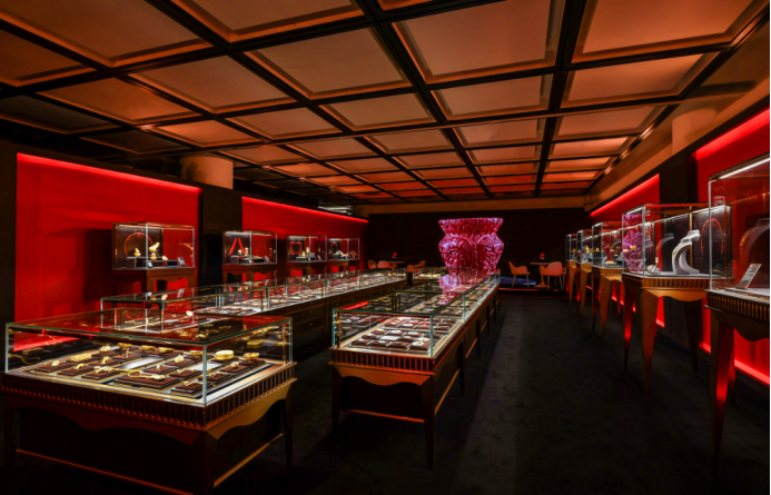 此次藝術之旅的最后一站是產(chǎn)品展銷區(qū)。觀者自由穿梭于此,可近距離領略黃金瑰寶的迷人魅力,體驗或選購周大福傳承系列金飾。一件件運用巧藝匠心、蘊含吉祥文化的藝術臻品體現(xiàn)著品牌對生活美學的獨特見解和經(jīng)典元素與現(xiàn)代格調的巧妙邂逅,彰顯品牌跨越時空的不朽傳承和雋永風華。