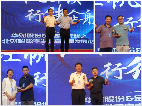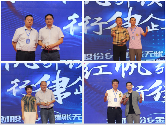 頒獎嘉賓:北京華財(cái)會計(jì)股份有限公司董事長王久立,金蝶賬無憂CEO祝錦華,大連數(shù)宇宙產(chǎn)業(yè)園有限公司總經(jīng)理徐林。