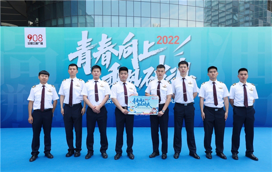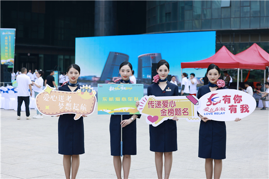 參與2023年”愛心送考“的東航安徽分公司乘務(wù)員為考生加油