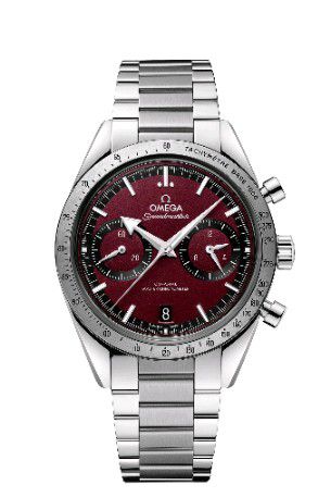 歐米茄超霸系列腕表最初為賽車(chē)設(shè)計(jì),后來(lái)因其卓越的性能成為陪伴人類(lèi)完成登月任務(wù)的首枚腕表。同時(shí),超霸腕表也是地球冒險(xiǎn)家的青睞裝備。這款超霸’57腕表采用勃艮第紅色表盤(pán),金屬表圈飾有激光鐫刻的黑色測(cè)速刻度。鍍銠小時(shí)刻度和”闊箭”指針均覆有白色Super-LumiNova夜光涂層。腕表內(nèi)部搭載歐米茄9906至臻天文臺(tái)機(jī)芯。