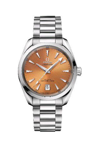 這款海馬系列Aqua Terra Shades腕表搭配橘黃色表盤(pán),表盤(pán)采用黃銅制成,由中央向四周呈現(xiàn)出太陽(yáng)射線(xiàn)的打磨效果,搭配鍍銠指針和小時(shí)刻度,并覆以白色Super-LumiNova夜光涂層。表殼采用精鋼材質(zhì)打造,經(jīng)拋光處理,搭配經(jīng)過(guò)升級(jí)設(shè)計(jì)的表鏈,精美的圓弧形鏈節(jié)令腕表的整體外觀更為和諧。腕表內(nèi)部搭載歐米茄8800至臻天文臺(tái)機(jī)芯,通過(guò)由瑞士聯(lián)邦計(jì)量研究院 (METAS) 核準(zhǔn)的嚴(yán)苛測(cè)試,其精準(zhǔn)度、防磁性和整體性能均達(dá)到行業(yè)的更高標(biāo)準(zhǔn)。