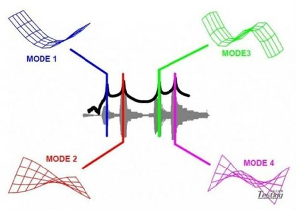 若要進(jìn)一步了解擺架的力學(xué)性能,單憑激振測(cè)試不能完全滿足,此時(shí)還需要開展模態(tài)測(cè)試。模態(tài)就是模擬結(jié)構(gòu)固有的動(dòng)態(tài)特性,如固有頻率、剛度、振型等特性。運(yùn)用模態(tài)分析,可以幫助我們?cè)u(píng)價(jià)現(xiàn)有結(jié)構(gòu)系統(tǒng)的動(dòng)態(tài)特性。模態(tài)分析可分為:數(shù)值模態(tài)分析、試驗(yàn)?zāi)B(tài)分析、運(yùn)行模態(tài)分析等。